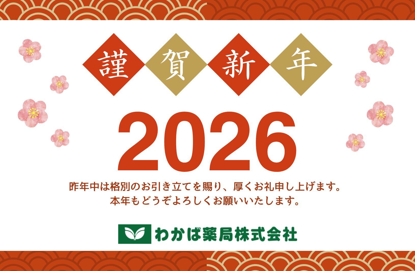 皆様のご健康とご多幸をお祈りし、新年のご挨拶とさせていただきます。 わかば薬局株式会社