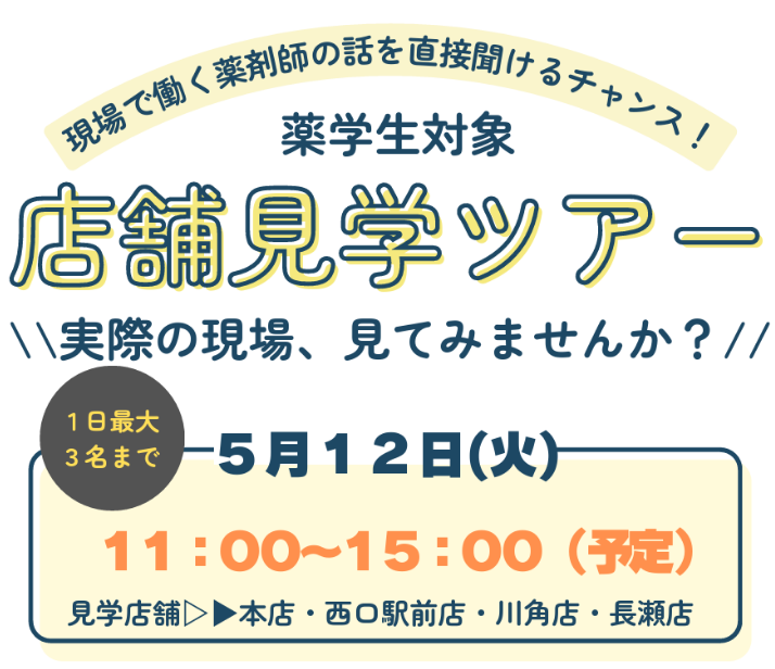 5月開催【薬学生対象】わかば薬局グループ店舗見学会のご案内